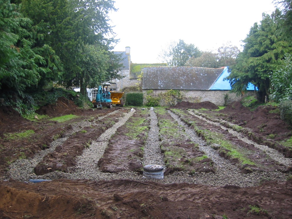The installation of the fosse septique. These pictures don't really convey what a mess the garden was left in.
